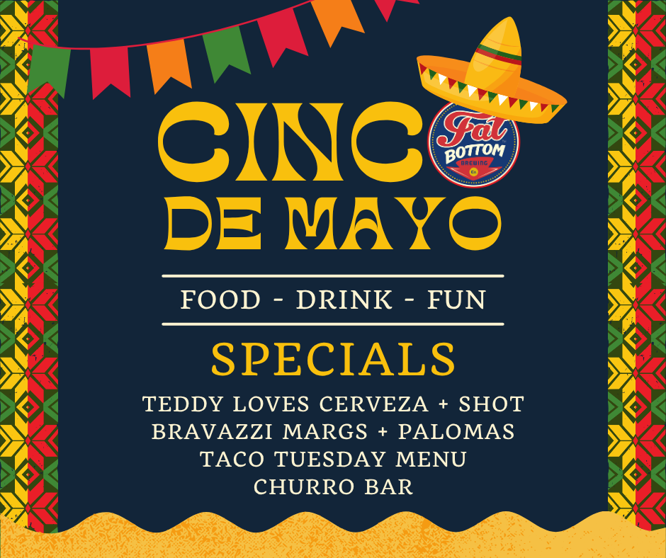 Celebrate Cinco de Mayo at Fat Bottom Brewery with a one-night fiesta full of flavor, great drinks, and good vibes. We’re turning up your Tuesday with a special Taco Tuesday menu featuring crave-worthy favorites and bold, festive bites made to pair perfectly with your favorite brews.